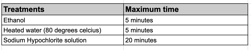 In some jurisdictions, it is acceptable to use bleach to sterilise AFB contaminated hive components. Research has shown that immersion for twenty minutes in a solution of 0.5% sodium hypochlorite kills AFB spores and other bacteria. The solution must be in direct contact with the spores. It is, therefore, necessary to remove wax and other debris prior to sterilisation (see above cleaning options). Please note: Bleach is not an acceptable AFB treatment in Australia under the DPI guidelines.