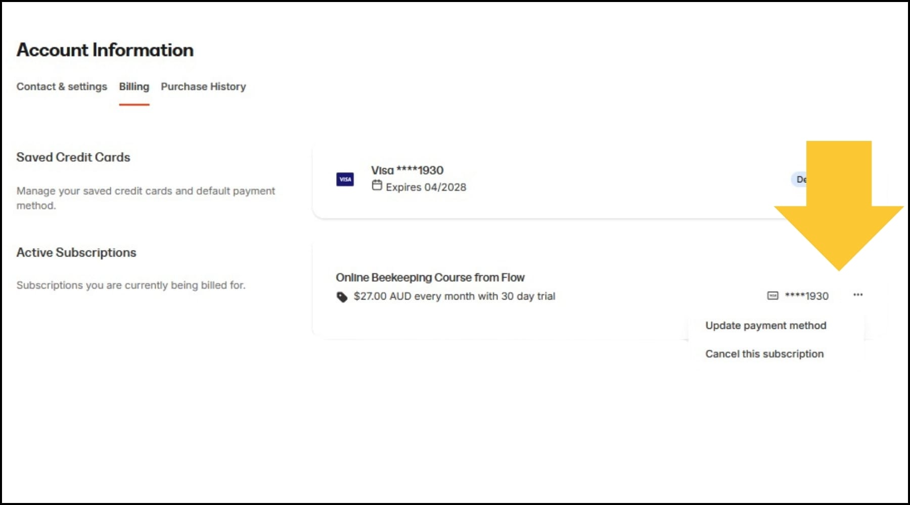 - Select Billing on your account settings page.
