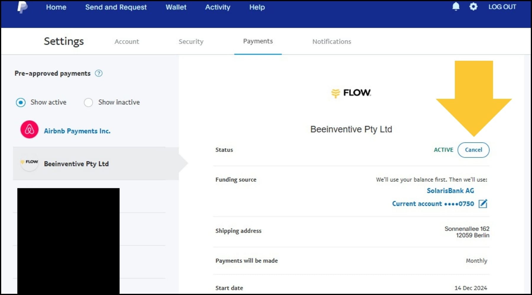 - You will be redirected to the Payments tab in your PayPal account.